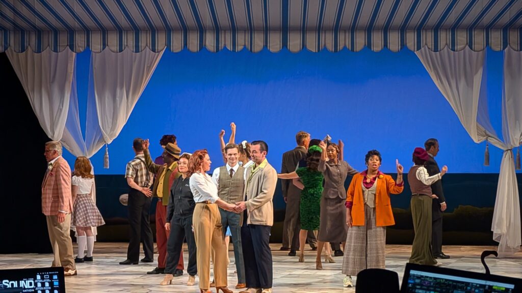 Clayton returns to the Ogunquit stage following star turns in last year’s Crazy for You and 2023’s Singin’ in the Rain, and although his role is a little underdeveloped (as is Connors’ Mike), he does what he does best – lead the company in the outstanding tap numbers and croon. He’s at his best in the duets with Hurder, “True Love” and “After You, Who?”, and the drunken comic duet with Connors, “Well, Did You Evah?”