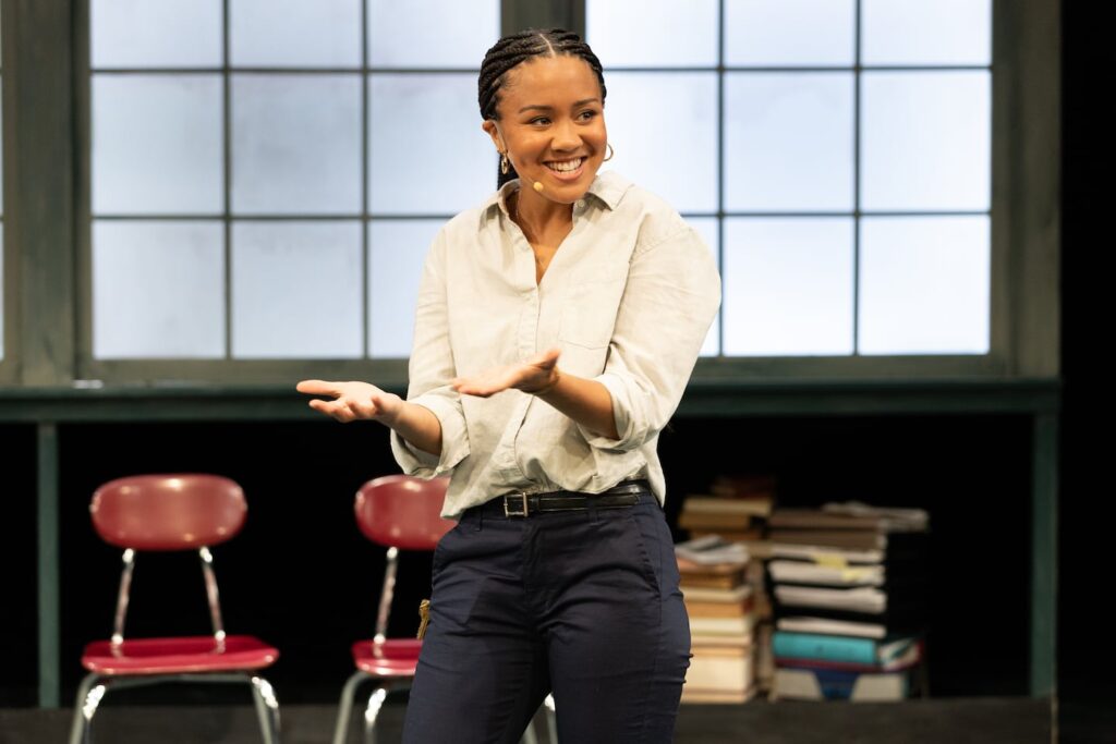 ‘No Child…’ — Written by Nilaja Sun. Directed by Pascale Florestal. Scenic Design by Cristina Todesco; Costume Design by Chelsea Kerl; Lighting Design by Amanda Fallon; Sound Design by Jacques Matellus. Presented by Gloucester Stage Company, 267 East Main St., Gloucester through August 23.