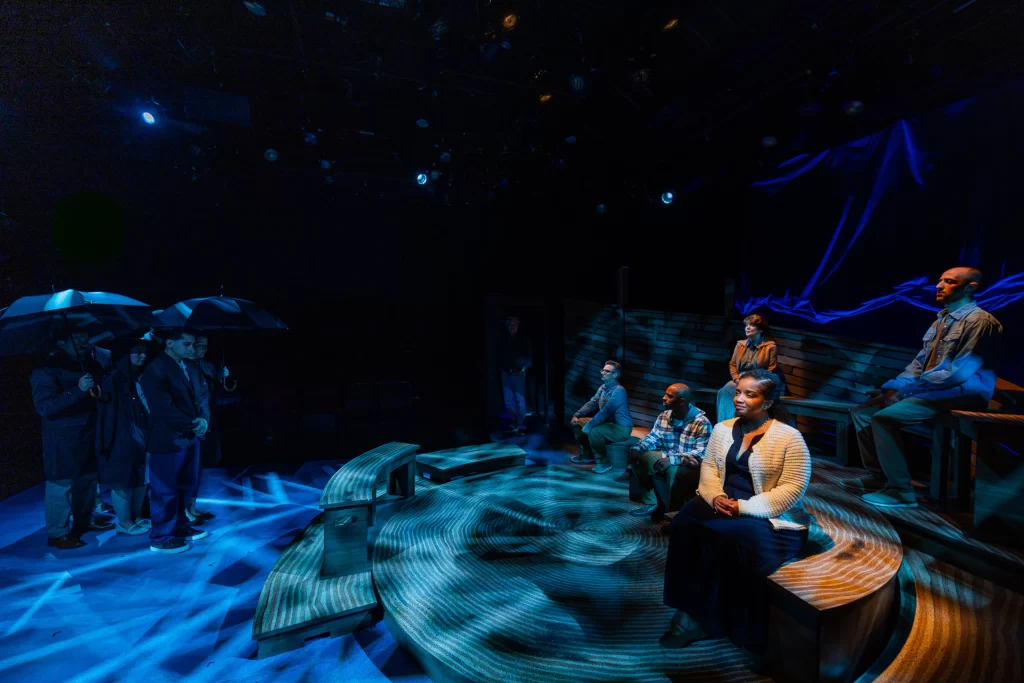O’Connor has assembled a fine cast that she directs with languorous precision. McGarrahan is a relaxed Stage Manager, balancing the right tone of sincerity and detachment. As the young lovers, Garcia and Moshiri Elwood are sweet and sympathetic. De’Lon Grant brings a kindly gravitas to Mr. Webb, editor of the town’s newspaper. St. George displays excellent range in a variety of characters, moving from young Rebecca to Mrs. Soames to a dead woman in the cemetery convincingly. Shelley Barish’s simple set design, made of wooden benches and pieces that fit into each other, is as warm and unassuming as the town and its people.