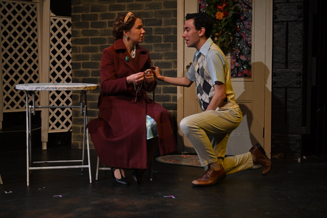 One of Theatre Uncorked’s unique strengths has been introducing fresh talent to Boston stages, whether through community theater or college theater programs, and Blood Brothers is no exception. In their dual roles, Mazzone, Fuller, and Casey deliver on the high energy of the children and the more demanding roles as young adults. Mazzone is terrific as the outwardly brazen but inwardly frightened Mickey; Fuller nails the naivete of young Edward and the privileged cluelessness of his older self; and Casey sparkles in every scene she’s in.