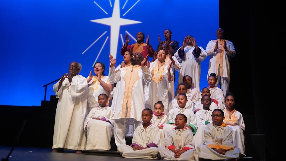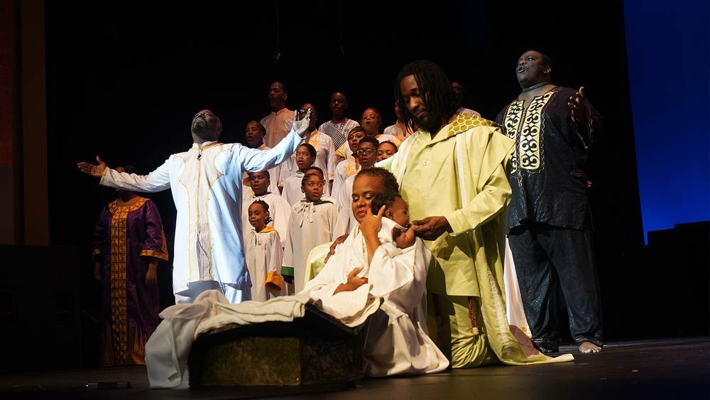 Voncille Ross: Actually, the playwright was a very good friend of the original music director. He asked him to set the music to this play. He saw the version on Broadway, and he asked him to bring a different spin, and our different spin to the original version of the play, Black Nativity, on Broadway was to add the children. Children stand on stage the entire time. And we have the birth of the baby, and it’s interpreted as if she is actually having the baby on the stage.