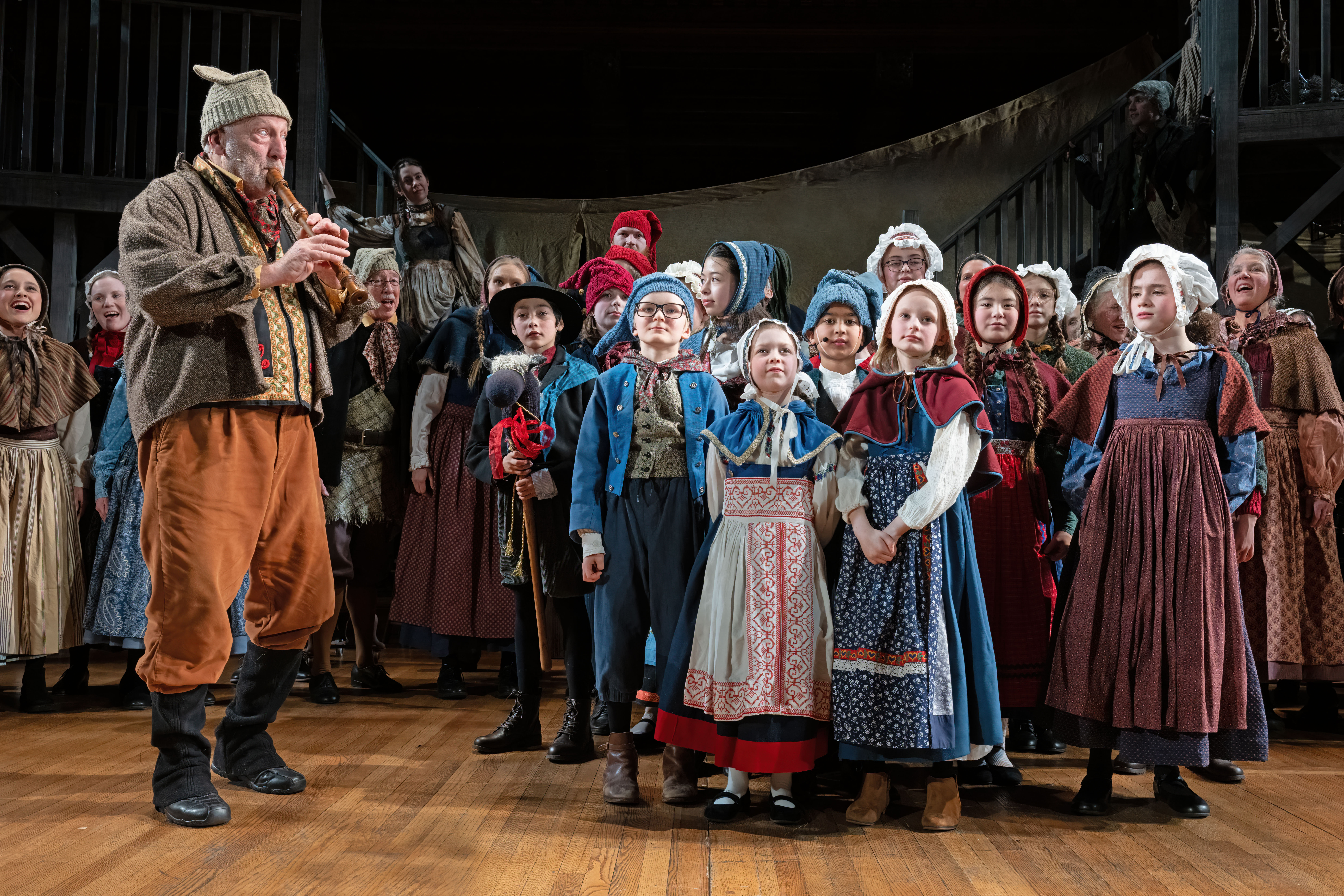 The musical talent in this year’s production is tremendous. Espiritu does a beautiful job with Mitt Hjerte Alltid Vanker (“My Heart Always Wanders”) and the vocals of Karen Edwards, Athena-Genesis Baptiste and Julia Deininger astound with Kulning, a traditional Nordic herding call. The harmonies throughout are gorgeous, and the wide range of ages onstage makes for an honest and relatable village. The musicians are terrific, and my companion and I discovered a new instrument – the nyckelharpa, expertly played by Laura Hummel and lydia levins. Tom Roby’s choreography is both simple and sophisticated, and Heidi Herniller’s costumes, particularly in the Queen’s court, are breathtaking. Under Debra Wise’s direction, the production is cogent and compelling.