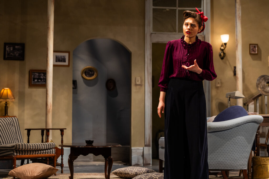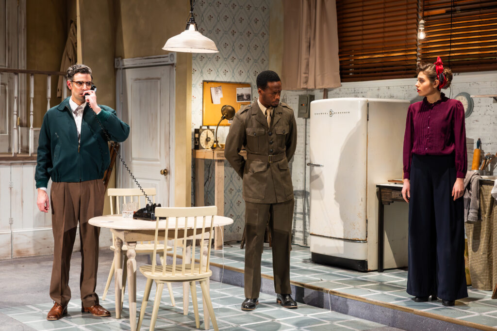 Katy Monthei’s detailed set thoroughly conveys the claustrophobic nature of a 1940s-style Greenwich Village apartment, and Jeff Adelberg’s shadow-driven lighting and Caroline Eng’s atmospheric sound design create an unnerving atmosphere. Director Weylin Symmes paces the production so it never lags, despite the highly detailed plot, and the challenging-to-stage final scene is well-orchestrated, even if it is difficult to fully comprehend at times.